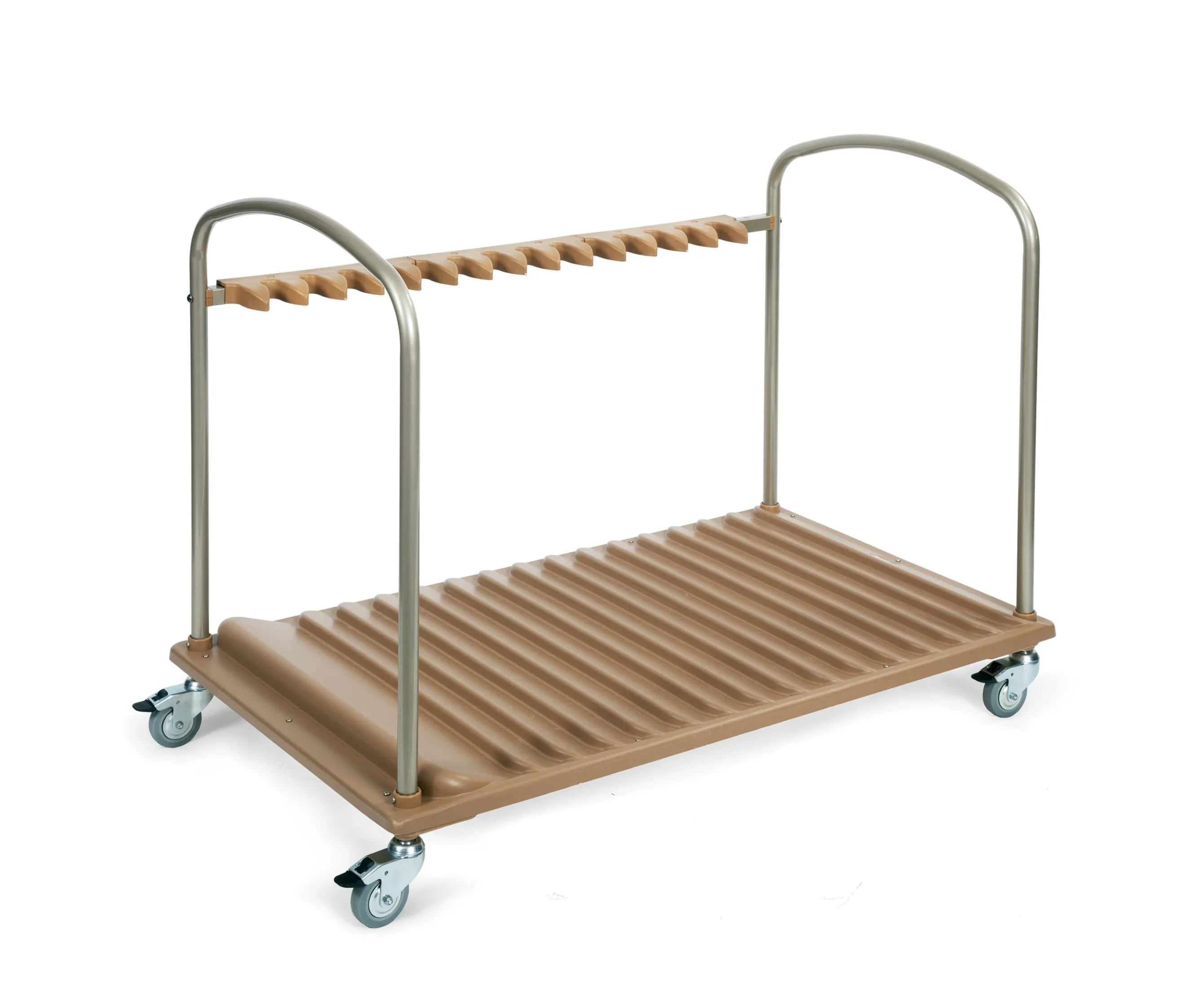 Save on floor space with this unique, vertical storage option. Cots are individually accessible, just like books on a shelf, so you won’t have to move all the rest to access the one you need. Large lockable casters allow for easy maneuvering. Choose a cart that holds 15 cots or one that holds 10.