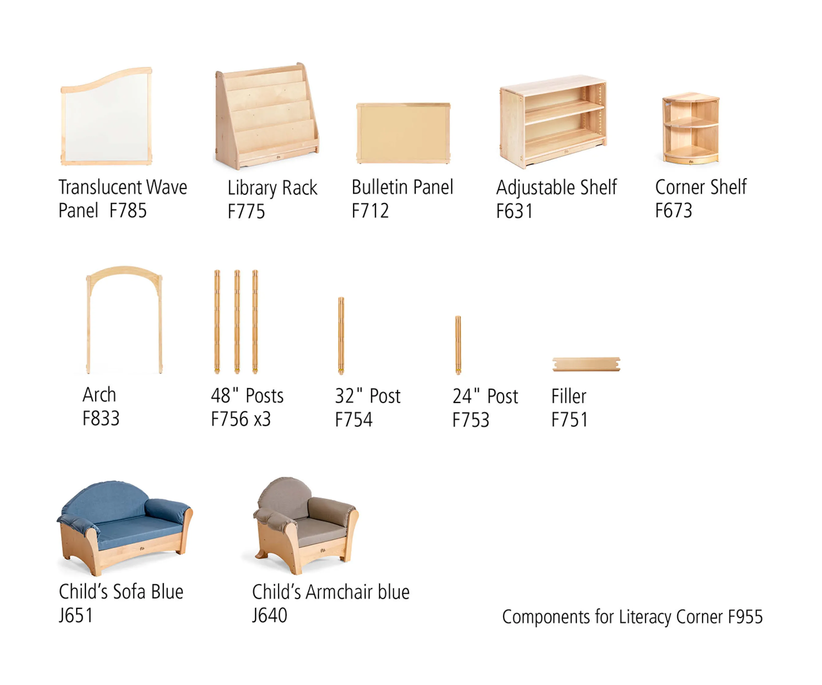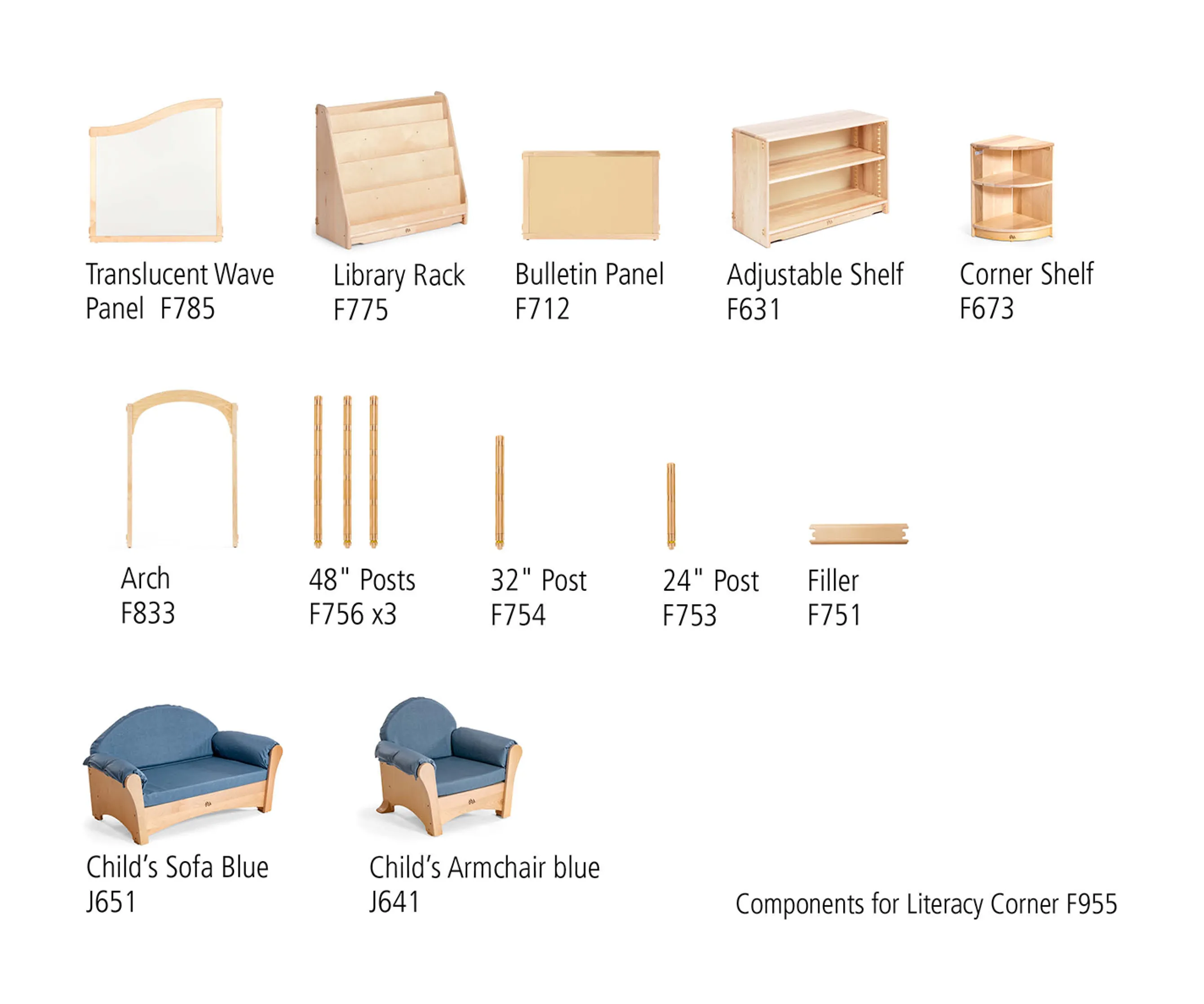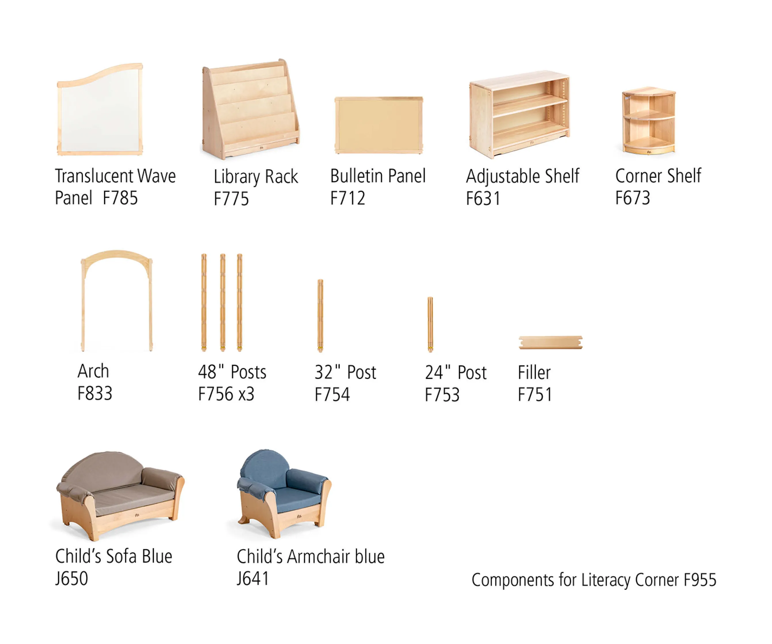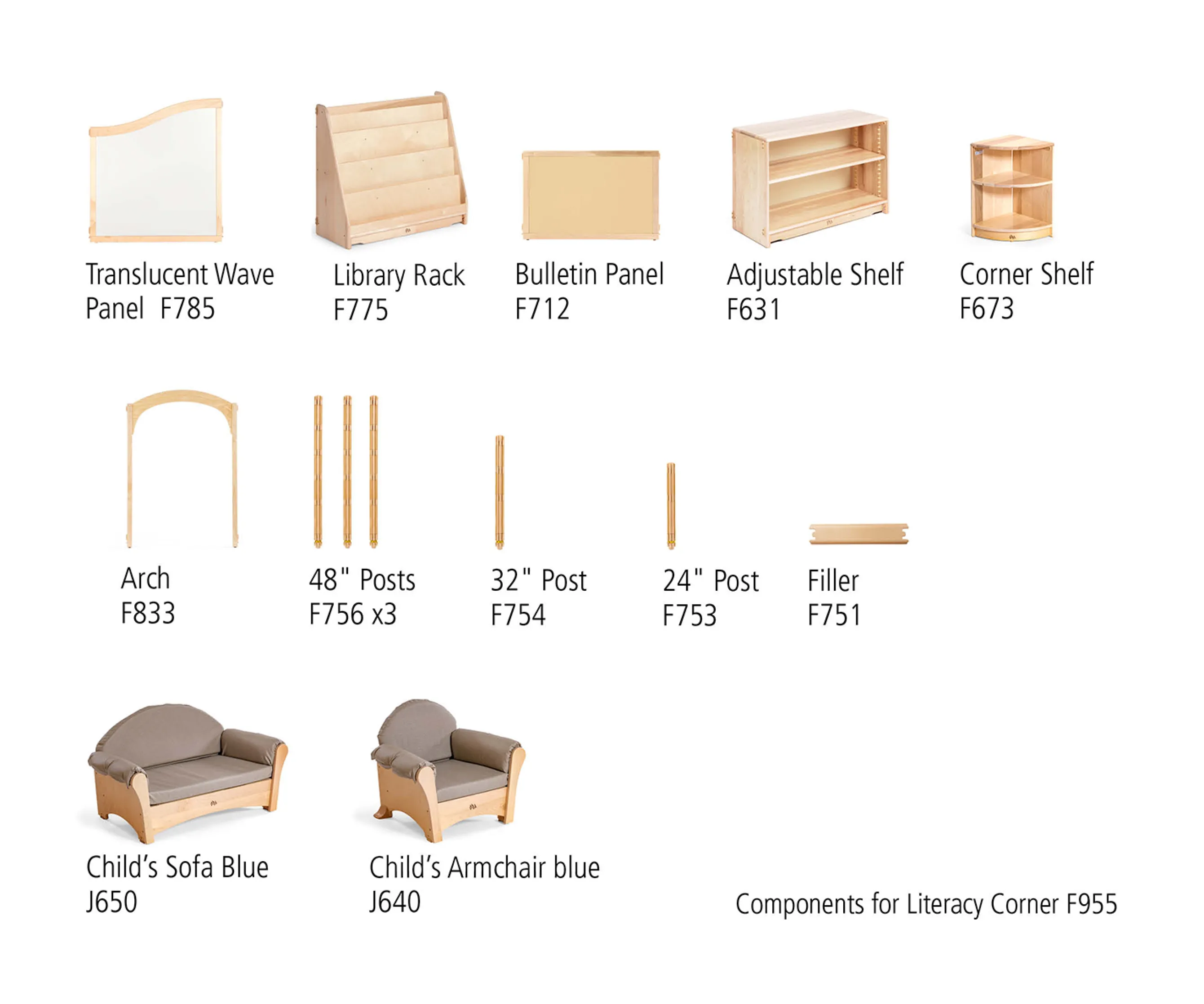 This beautiful, mini library is an open invitation to curl up on the sofa and savor a good book. Set includes everything needed for a quick, tool-free assembly. Sofa and Armchair come in neutral or blue.