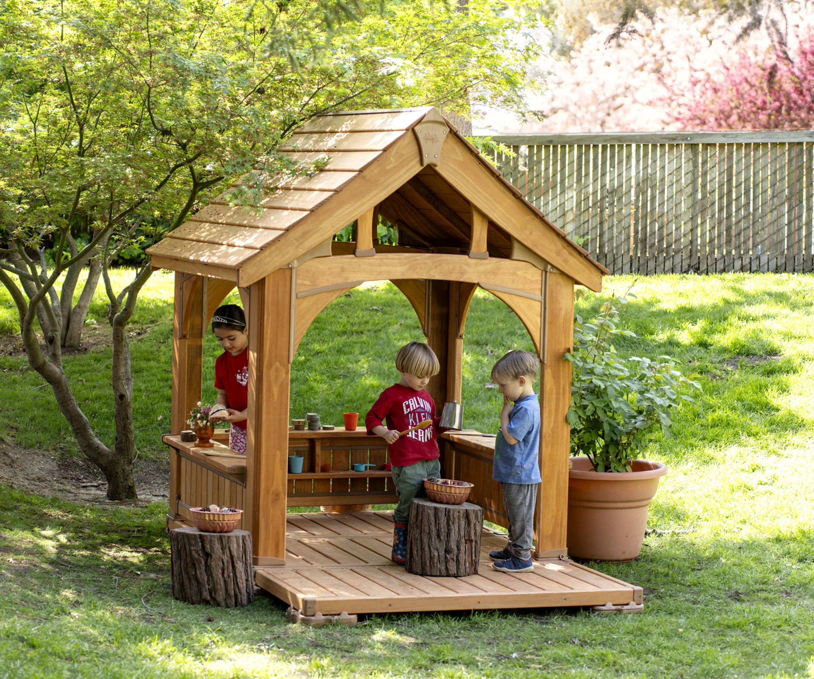 Allow dramatic play to thrive in your outdoor space with the Outlast Playhouse. Ample space and multiple work surfaces support deep collaborative play. The open design lets teachers easily see and interact with children.