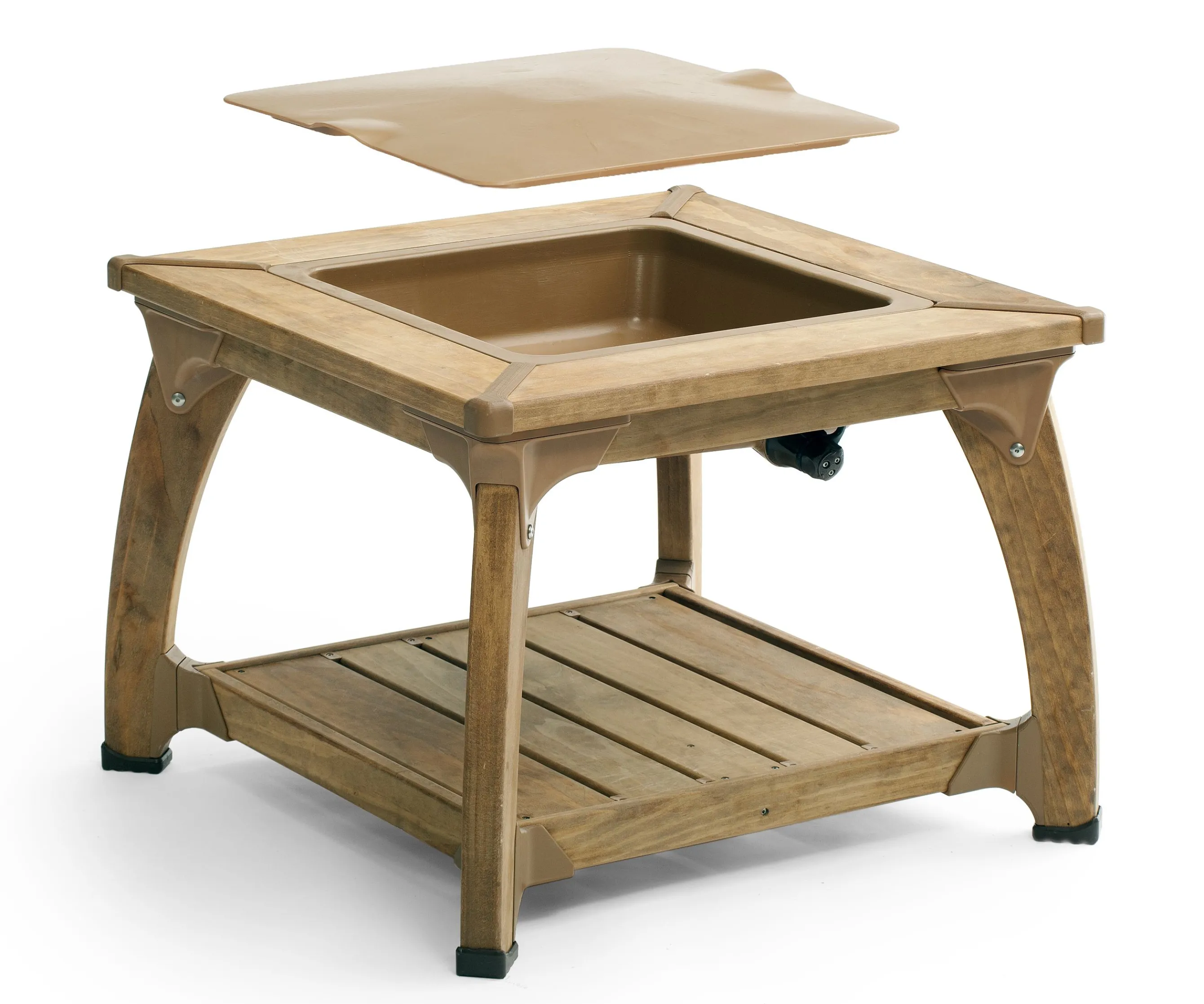 Fully weatherproof construction makes this the perfect outdoor sensory table. The durable recessed pan has a large drain makes clean up easy. The slatted lower shelf allows sand and dirt to fall through. Choose from two age-appropriate heights.