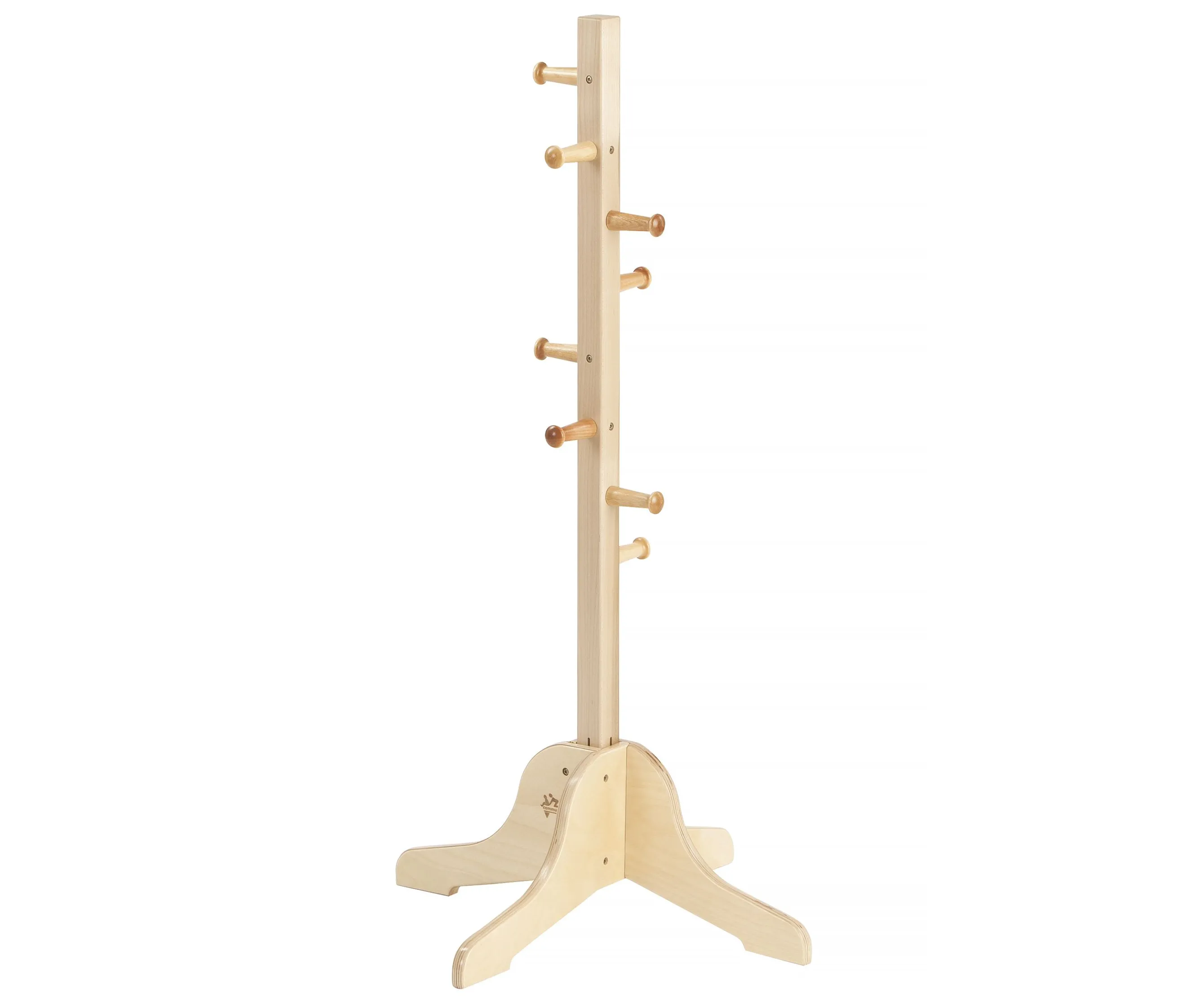 The eight solid maple pegs are the perfect height for children to hang up their own aprons. Or use it in the dramatic play corner for scarves and hats. Assembles in seconds without tools. Choose from standard height or toddler height.