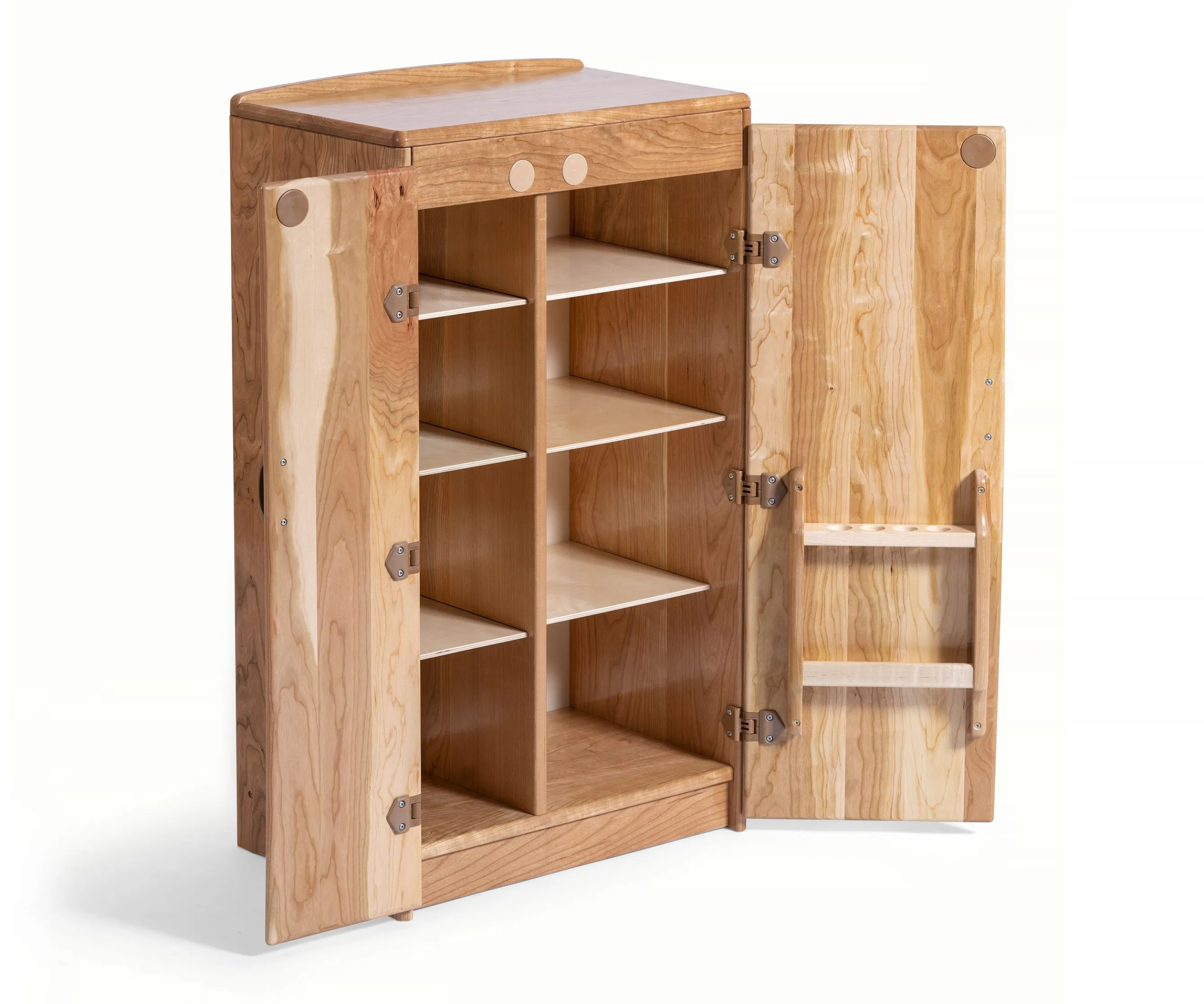 With separate doors for fridge and freezer, there’s plenty of room inside—even an egg rack! Built from solid hardwood in your choice of maple or cherry, this refrigerator is ready to serve for decades.