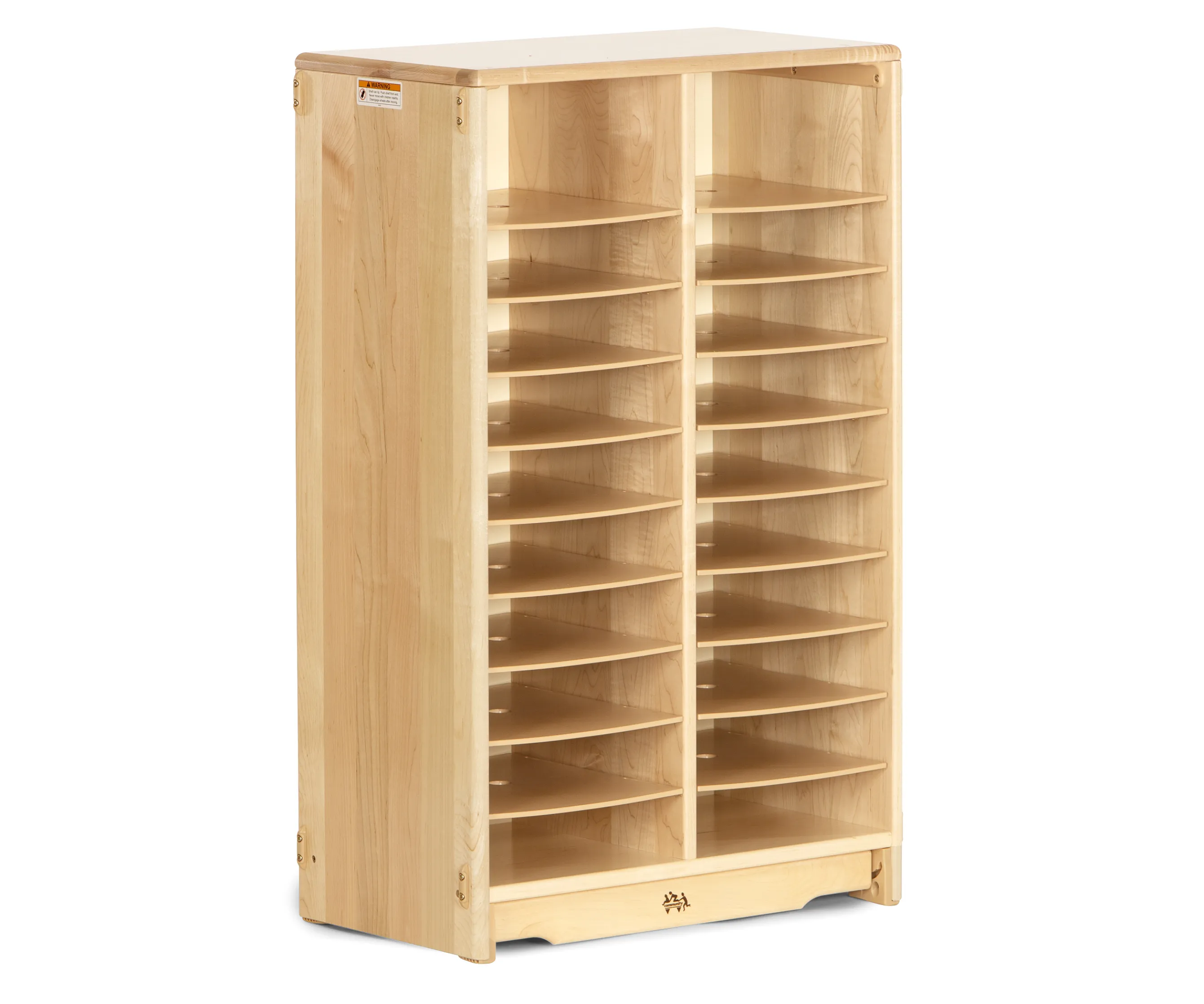 Storage for manipulatives and much more. The adjustable dividers allow for shallow or deep totes and baskets. Use Roomscapes shelves, panels and gates to create flexible room dividers.
